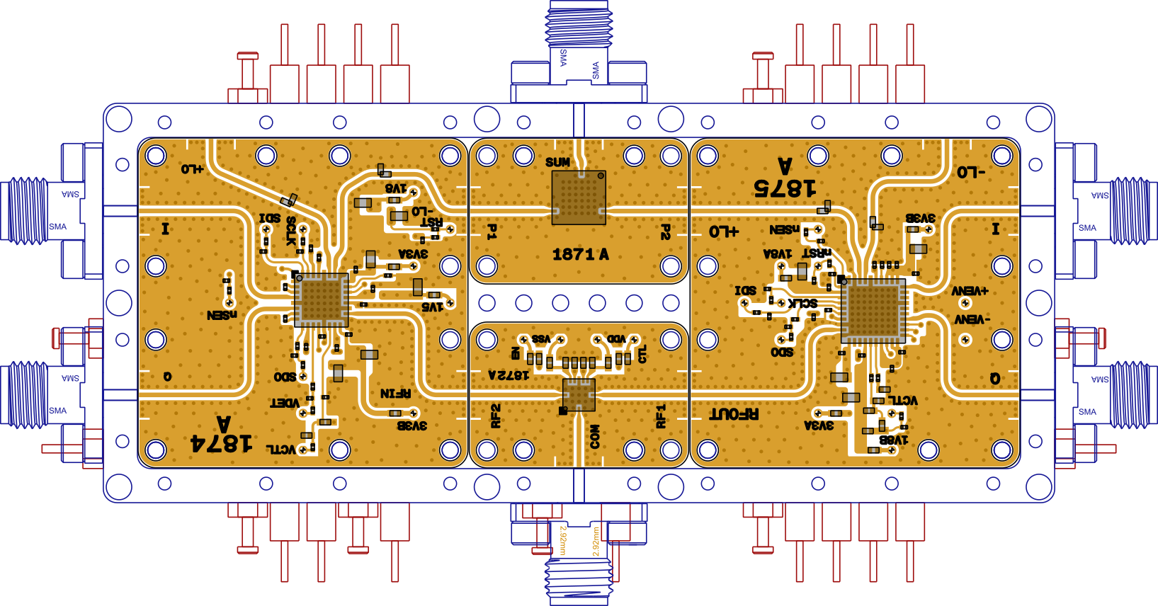Qty 5 SuperSMA Female Connectors (LO and 2x IF I/Q)