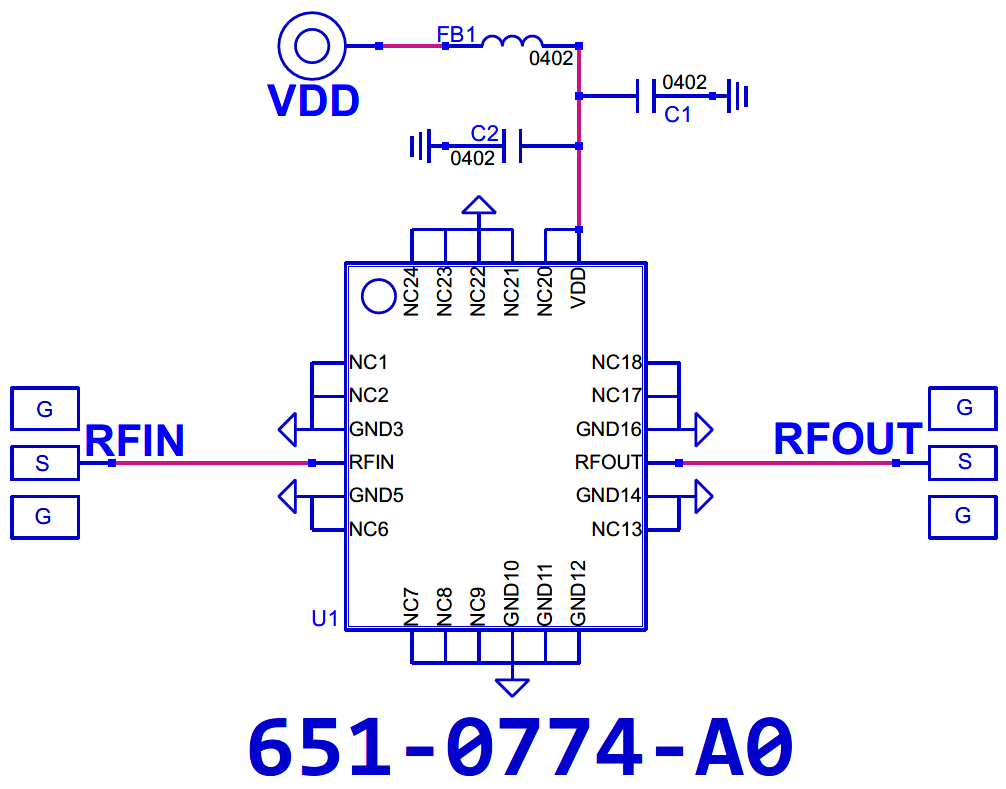 1. Apply VDD = 5.0V Verify IDD ~120mA 2. Apply RF Input Power-down Sequence 1. Remove RF Input 2. Turn off VDD |