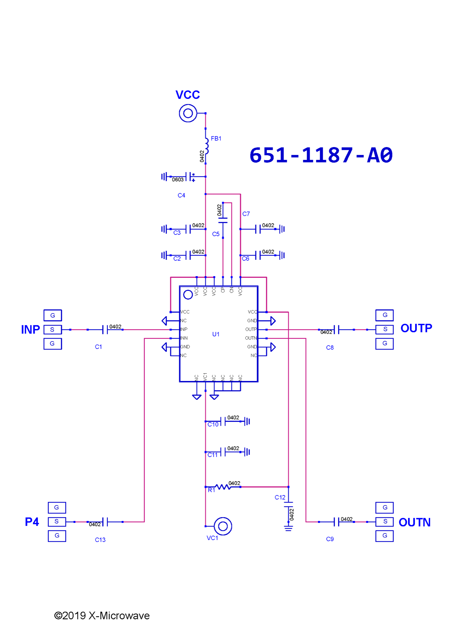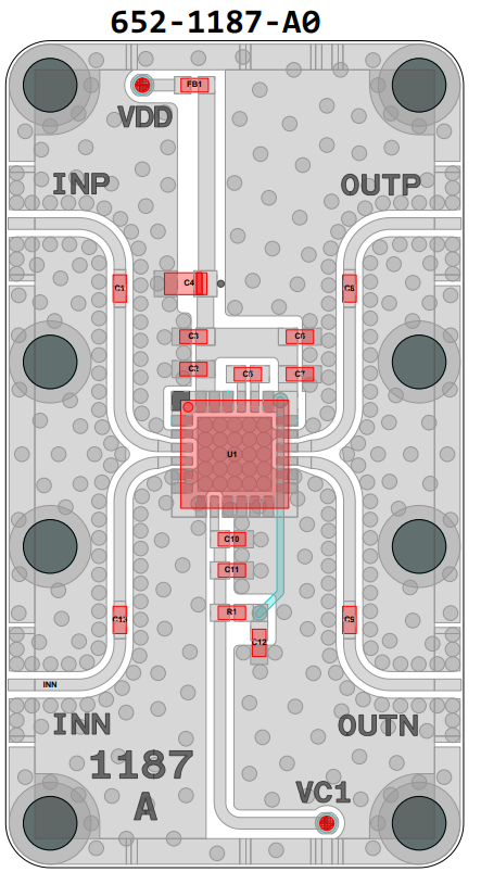 1. Apply VDD = +5.0V 2. Apply VC1 = +2.5V 3. Apply the RF input signal Power-down Sequence 1. Turn off the RF input signal 2. Adjust VC1 to 0V 3. Adjust VDD to 0V |